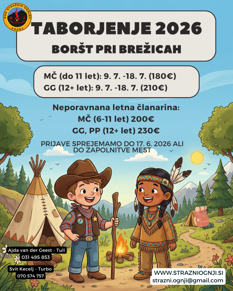 Za vsa vprašanja o poteku taborjenja lahko pokličete telefonsko številko 070 330 127 (Češpla) ali 031 495 853 (Tuli).